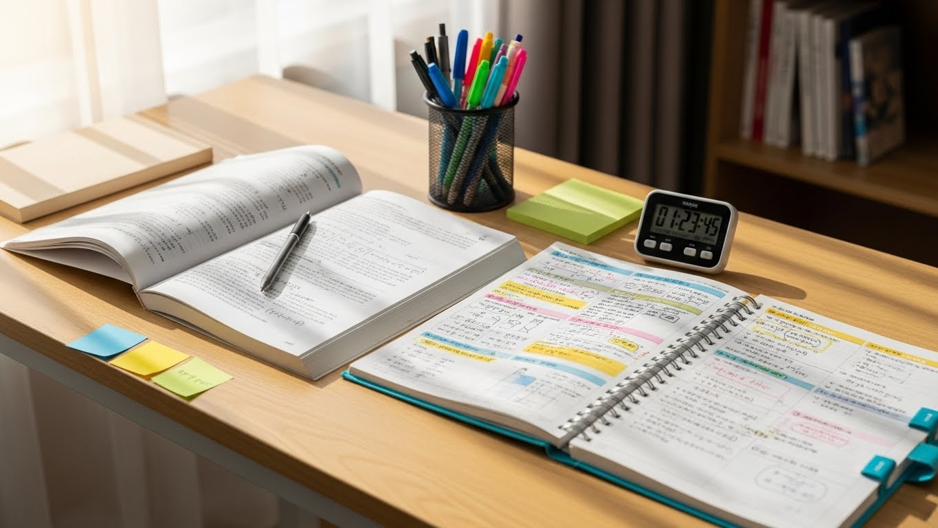 25분 집중, 5분 휴식의 뽀모도로 기법으로 집중력을 극대화하세요. 또한, 매일 밤 스터디 플래너에 다음 날 계획을 상세히 기록하고, 실천 여부를 체크하며 성취감을 느끼는 것이 중요합니다. 시각적으로 자신의 공부량을 확인하며 동기 부여를 얻을 수 있습니다.